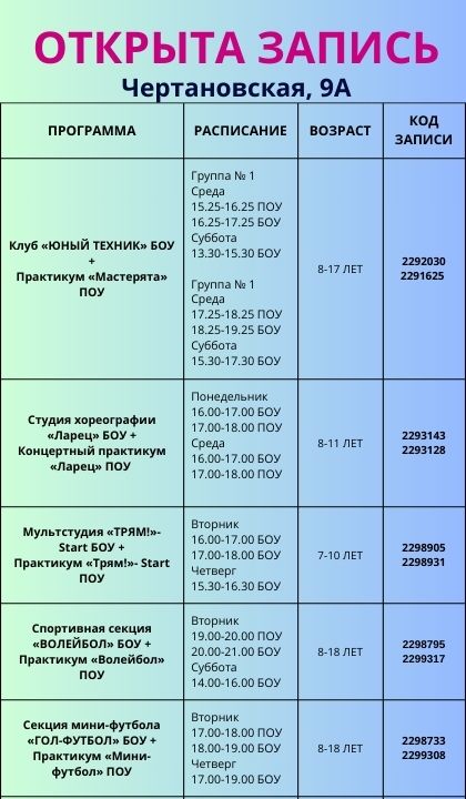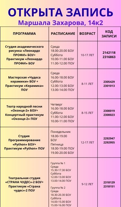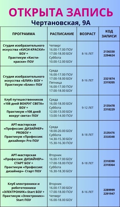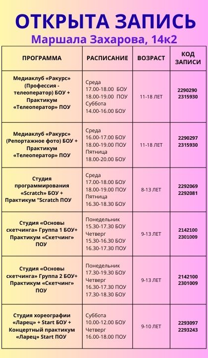 Уважаемые родители, для вашего удобства мы подготовили расписание модульных программ на 2025-2026 учебный год!