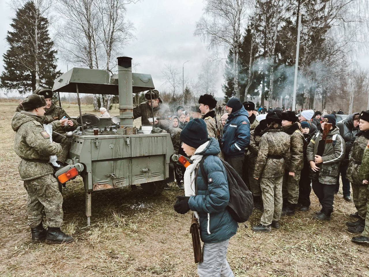 Они провели торжественное построение у памятника павшим бойцам за свободу и независимость нашей Родины, возложили цветы к могилам павших и почтили их память минутой молчания. Отведали вкусной каши из котла полевой кухни и уставшие, но счастливые вернулись домой!